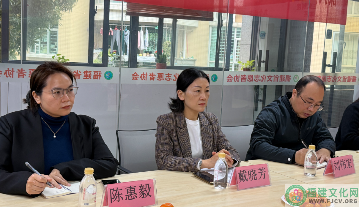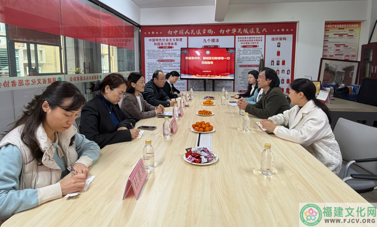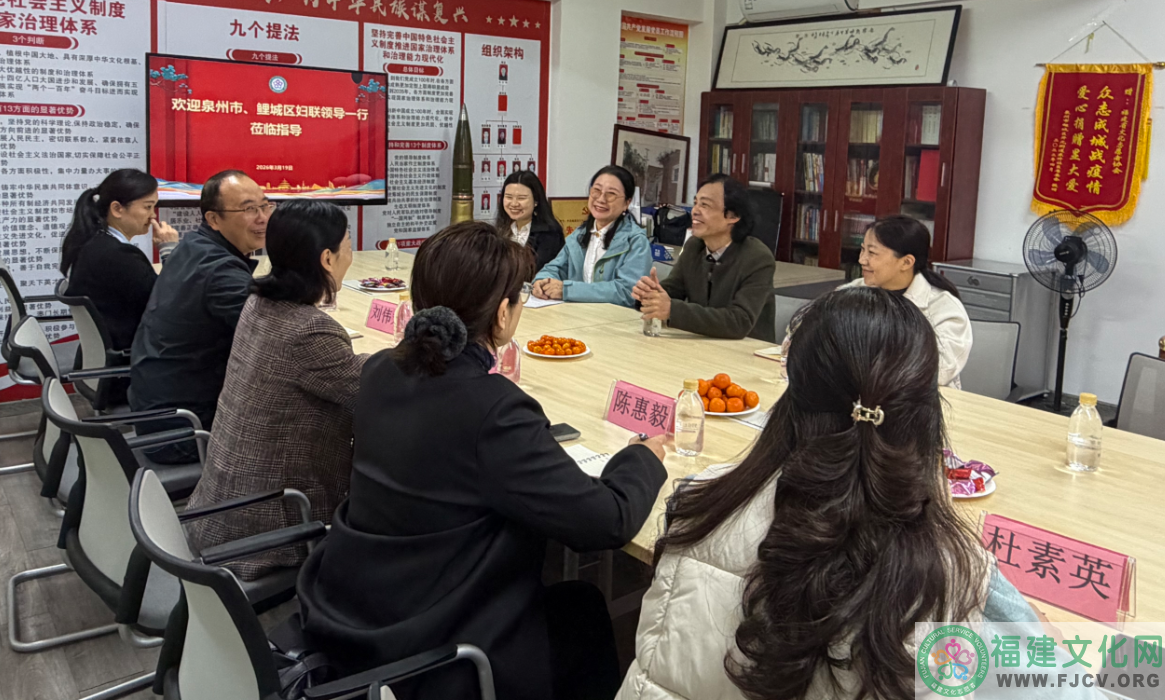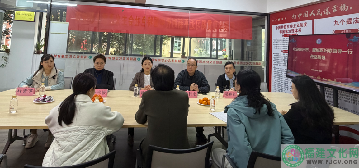 2026年3月19日上午,由泉州市妇联四级调研员戴晓芳带队,泉州市妇联办公室主任兼组织部长刘伟宏、一级科员吴燕红以及鲤城区妇联副主席陈惠毅、工作人员杜素英一行莅临福建省文化志愿者协会调研妇女工作。